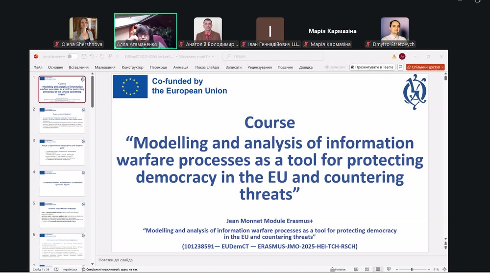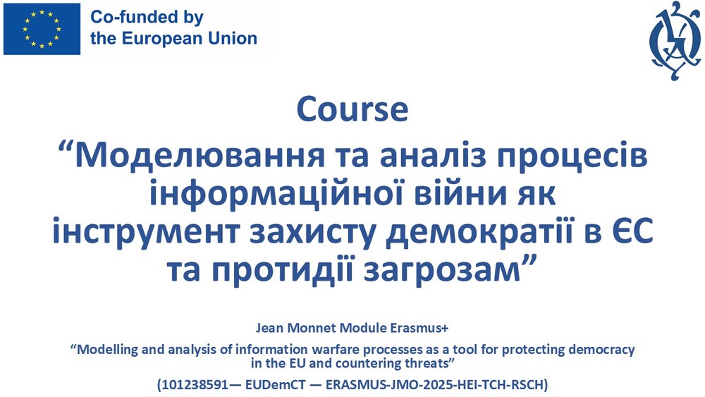 In January–February 2026, a free certificate program—the course “Modeling and Analysis of Information Warfare Processes as a Tool for Protecting Democracy in the EU and Countering Threats”—was implemented as part of the EUDemCT project, which is being carried out by the National University of Ostroh Academy with co-funding from the European Union.