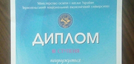 Магістрантка спеціальності «Фінанси, банківська справа та страхування» економічного факультету НаУОА Наталія Ковальчук здобула третє призове місце у ІІ етапі Всеукраїнської студентської олімпіади з навчальної дисципліни «Страхова справа», яка цьогоріч відбувалася 23-25 квітня на базі Тернопільського національного економічного університету.