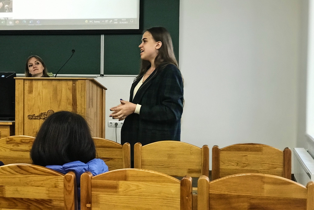 Анна Матласевич, як представниця студентського самоврядування презентувала як функціонує ГО «Братство спудеїв», які є можливості реалізації для студентів та інститут тьюторства.