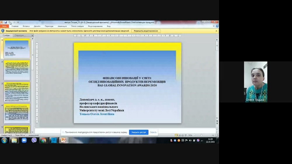 Докторка економічних наук, доцентка, професорка кафедри фінансів Волинського національного університету імені Лесі Українки, Олеся Тоцька, зробила огляд інноваційних продуктів переможців BAI Global Innovation Awards 2020.