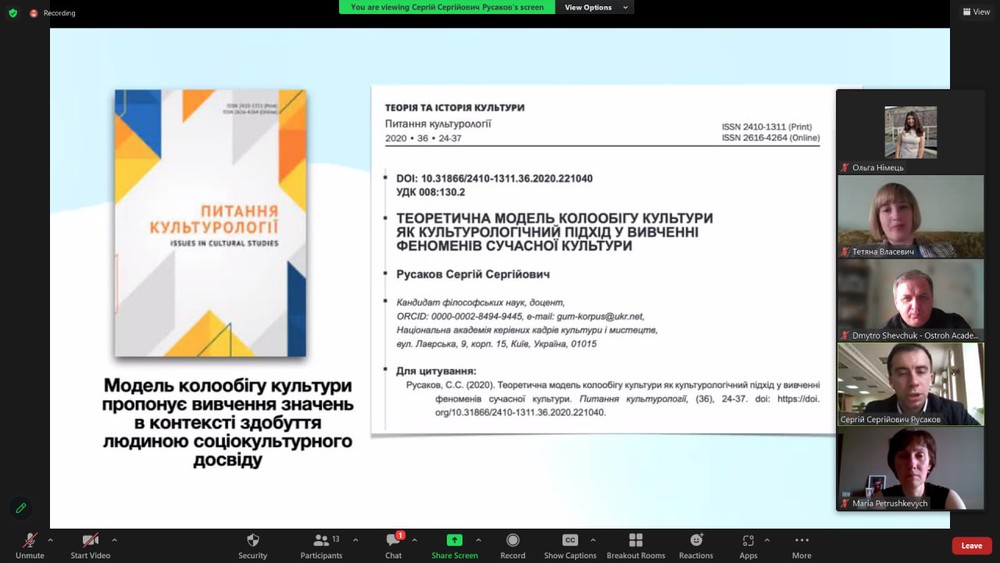 У межах Днів науки 2023 16 травня в Національному університеті «Острозька академія» відбулась панельна дискусія «Культурологія в Україні: шляхи розвитку». До зустрічі приєднались викладачі культурології та філософії різних університетів України, зокрема Львівського національного університету імені І. Франка, Харківської державної академії дизайну та мистецтв, Києво-Могилянської академії, Національної академії керівних кадрів культури і мистецтв, Українського державного університету імені М. Драгоманова тощо.