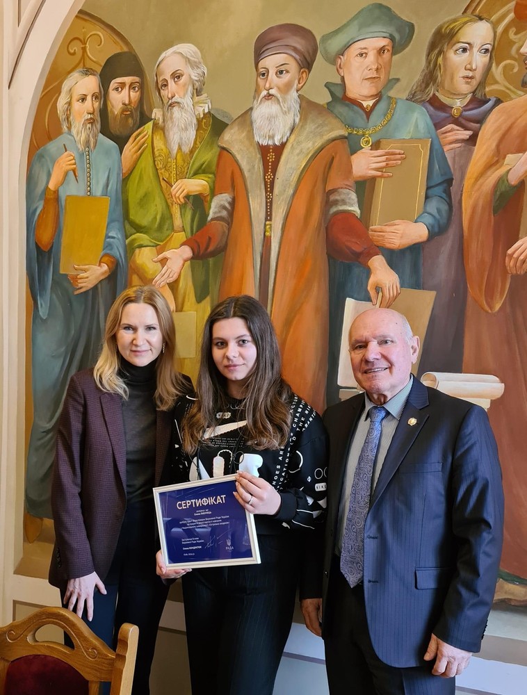 Пані Олена вручила гранти студенту 2-го курсу спеціальності «Національна безпека» Олександру Манькевичу і студентці 2-го курсу спеціальності «Історія та археологія» Олені Лабунець.