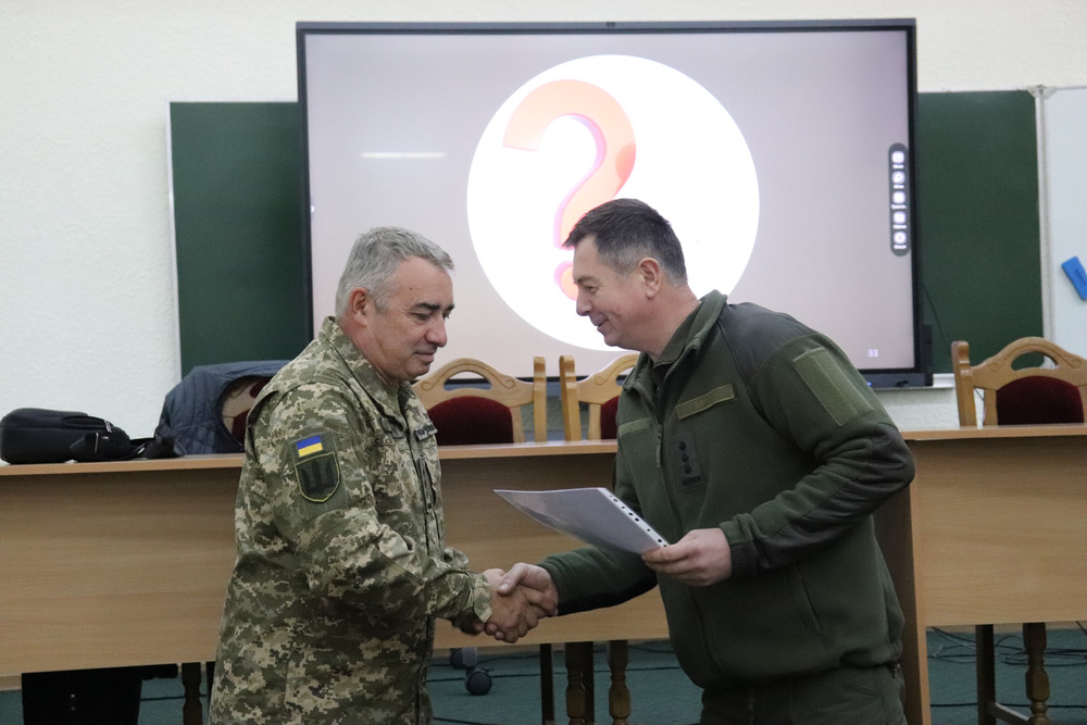 Наприкінці зустрічі Володимир Клебан від імені ректора Острозької академії, доктора психологічних наук, професора Едуарда Балашова вручив полковнику Ігорю Красоті подяку за сприяння в підготовці студентів Національного університету «Острозька академія» за програмою «Базова загальна військова підготовка».