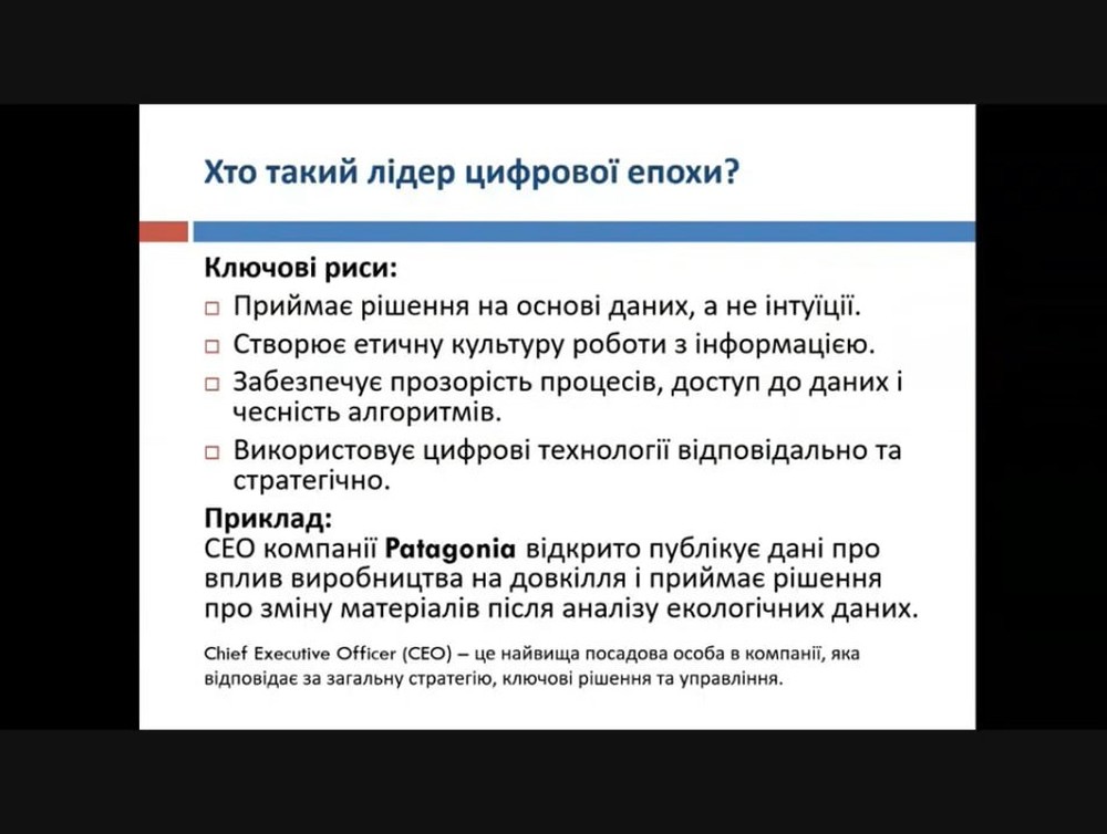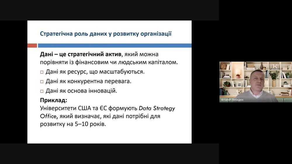 Віталій Лебедюк наголосив на основних компетентностях лідера цифрової епохи й вагомості етичного аспекту використання даних, що формує основу управлінських рішень.