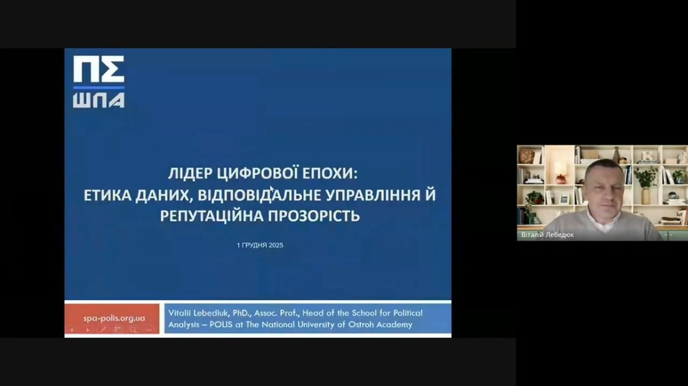 1 грудня в Національному університеті «Острозька академія» в межах навчально-методичного центру «Школа освітніх інновацій» відбулася восьма лекція циклу «Quo vadis, університете?» на тему «Лідер цифрової доби: етика даних, відповідальне управління й репутаційна прозорість».