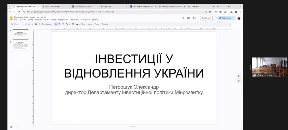 5 листопада в межах навчальної дисципліни «Інвестиційний аналіз» для студентів 3-4 курсів Навчально-наукового інституту інформаційних технологій та бізнесу відбулася лекція на тему «Інвестиції у відновлення України». Спікер – Олександр Петрощук, директор Департаменту інвестиційної політики Міністерства розвитку громад та територій України, випускник Національного університету «Острозька академія» спеціальності «Фінанси та кредит».