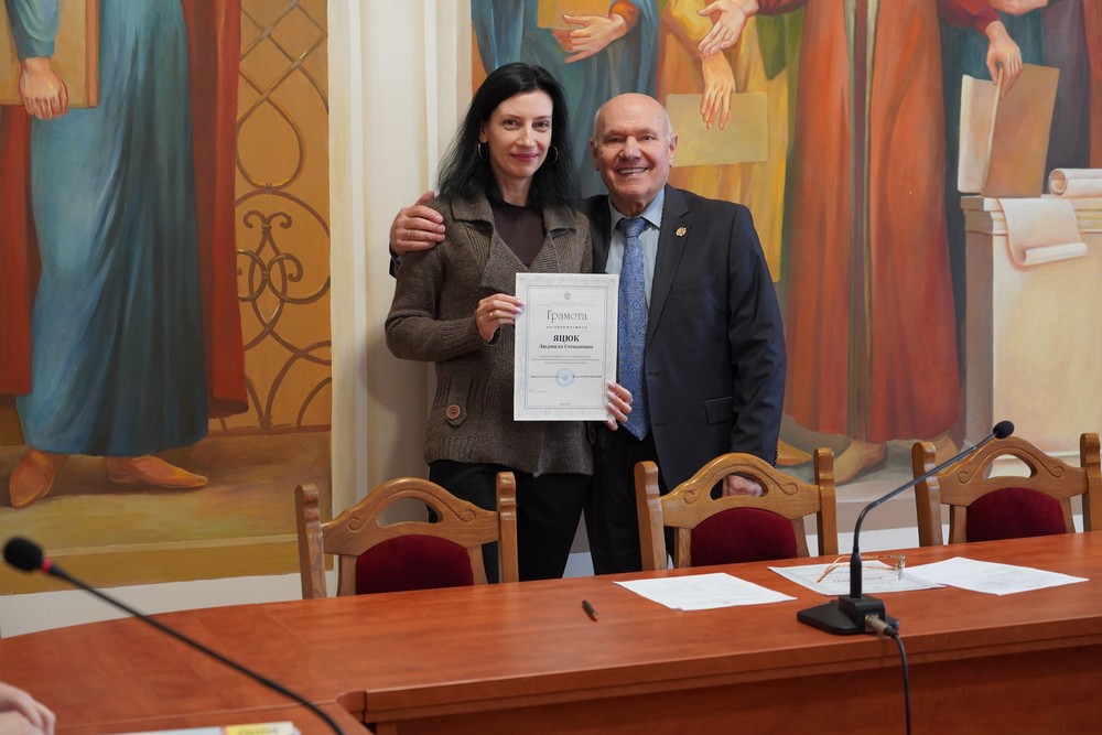 Під час засідання ректорату Національного університету «Острозька академія» відбулося вручення почесних грамот Департаменту освіти і науки Рівненської обласної державної адміністрації.