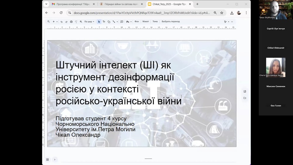 «Дякую колегам-модераторам за організацію роботи секцій, дякую учасникам за якісну підготовку доповідей та їхнє представлення, дякую нашим гостям за виступи та обмін досвідом. Наша конференція продемонструвала, що тематика вивчення гібридних протистоянь і їхнього впливу на світові політичні процеси є важливою і потребує подальших досліджень та детальнішого опрацювання»,