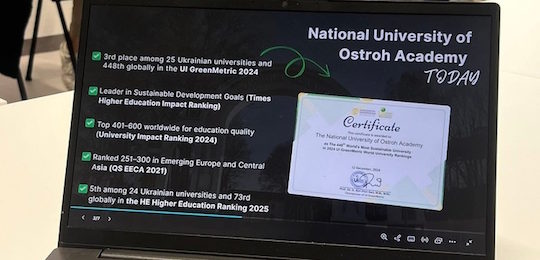 Національний університет «Острозька академія» на цій зустрічі представила студентка 3-го курсу Навчально-наукового інституту лінгвістики Ангеліна Киричук, яка взяла активну участь у панельних дискусіях і презентувала екологічні ініціативи університету. Вона поділилася досвідом впровадження сталих практик Острозької академії та налагодила контакти з однодумцями з усього світу.