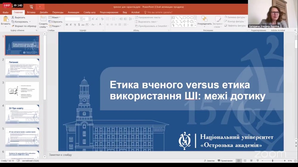 13 травня відбулася відкрита лекція «Наукова дослідницька доброчесність в епоху штучного інтелекту». Організатори – Альянс українських університетів, бібліотека Українського католицького університету, бібліотека Сумського державного університету, Національний університет водного господарства та природокористування, Наукова бібліотека Національного університету «Острозька академія».