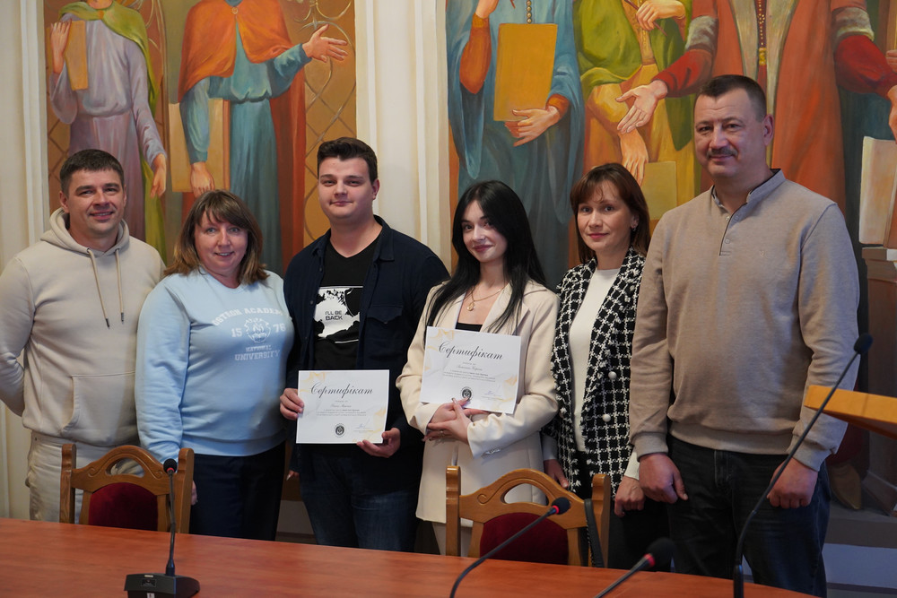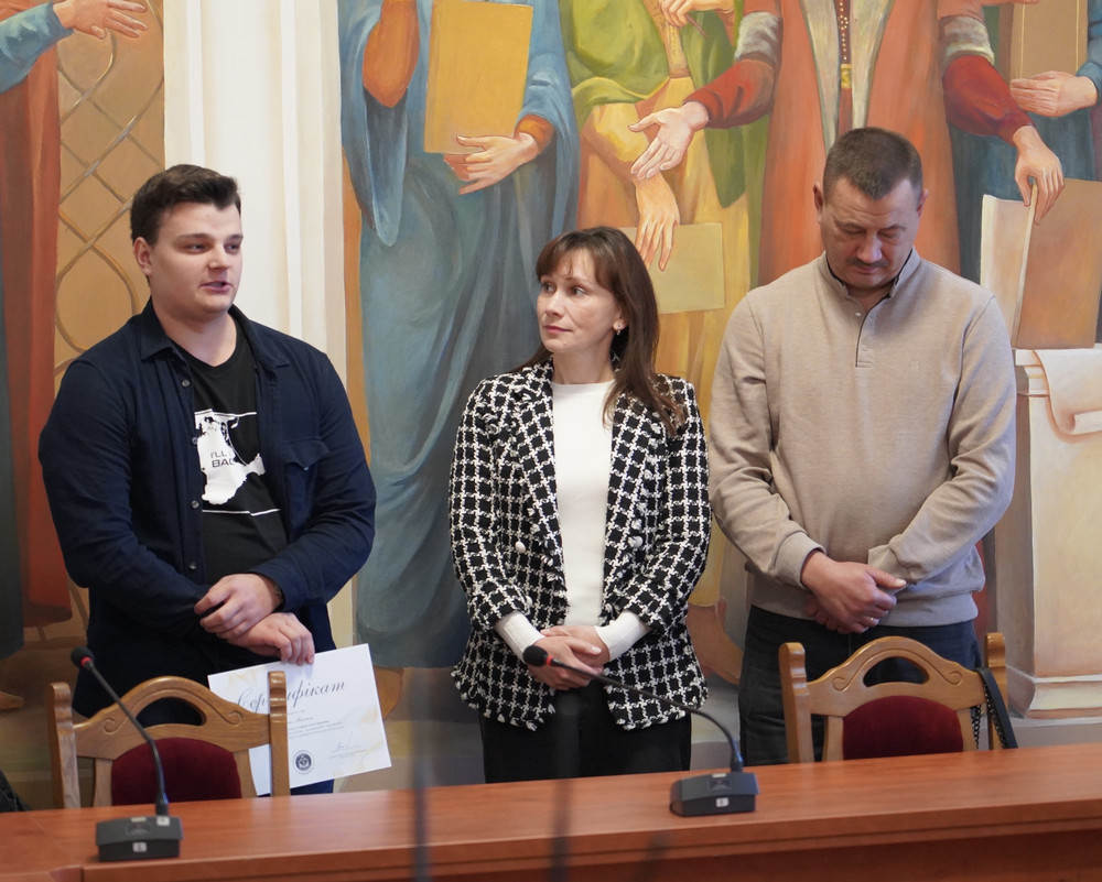 Батьки Іллі Орлова вручили грант студентці 4-го курсу спеціальності «Комп’ютерні науки» Карині Антонюк, а також студенту 3-го курсу спеціальності «Комп’ютерні науки» Максиму Баску.
