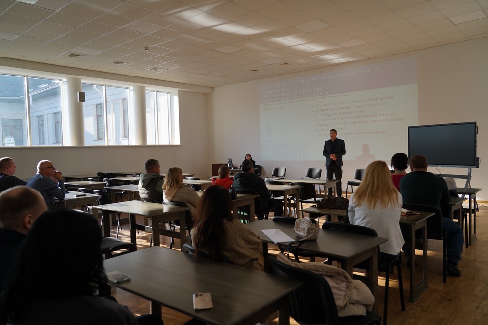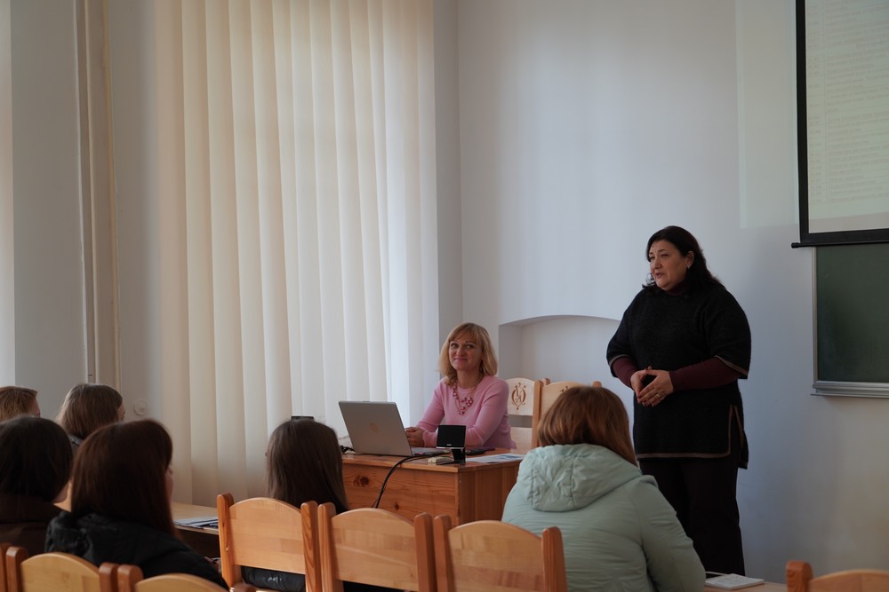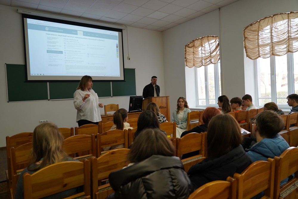 Керівниця Консультаційного центру для абітурієнтів Приймальної комісії НаУОА Софія Лозюк розповіла учасникам про структуру інститутів, а також освітньо-професійні програми, які є на кожному з них.