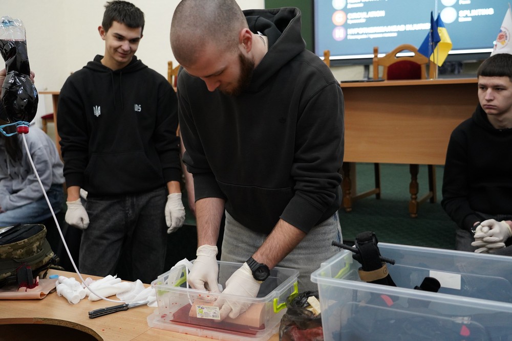 Крім того, студенти практично спробували накладати турнікети, а також здійснювати інші заходи, спрямовані на надання першої допомоги.