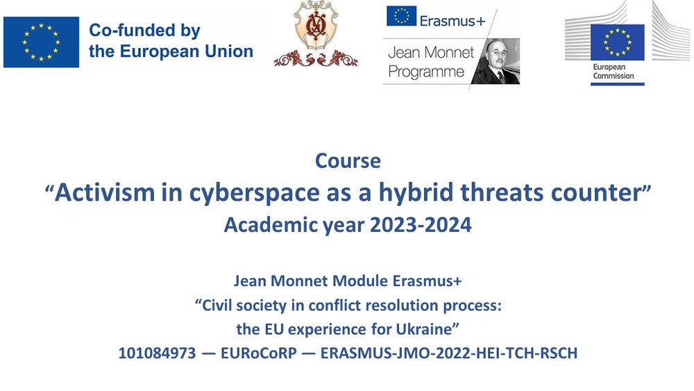 З 1 травня по 19 червня 2024 року студенти Острозької академії взяли участь у сертифікатній програмі «Активізм у кіберпросторі як протидія гібридним загрозам», яка реалізовується в рамках виконання проєкту Жана Моне «Громадянське суспільство у процесі вирішення конфліктів: досвід ЄС для України».