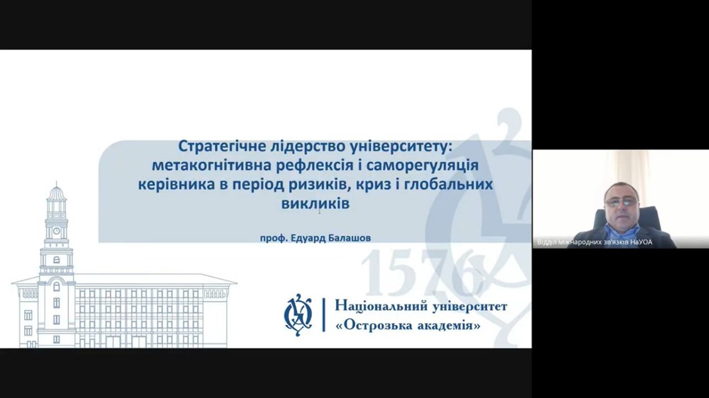 20 жовтня в Національному університеті «Острозька академія» в межах навчально- методичного центру «Школа освітніх інновацій» відбулася друга лекція циклу «Quo vadis, університете?» на тему «Стратегічне лідерство університету: метакогнітивна рефлексія і саморегуляція керівника в період ризиків, криз і глобальних викликів».