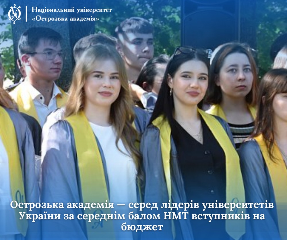 Національний університет “Острозька академія” увійшов у п’ятірку кращих університетів України за середнім балом НМТ вступників на бюджет.