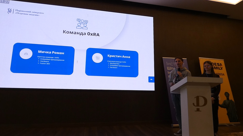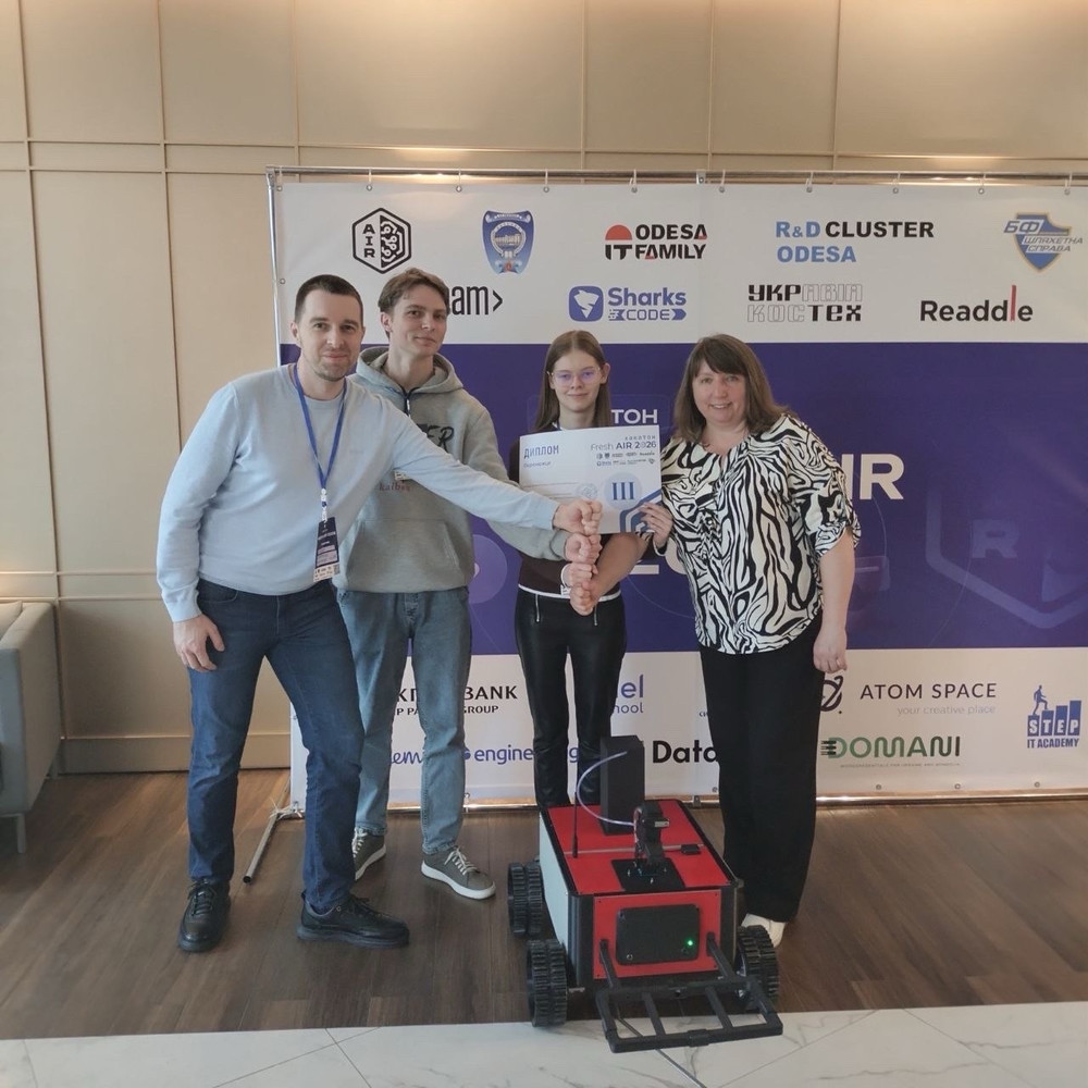 Студенти 2 курсу освітньої програми «Робототехніка та машинне навчання» Національного університету «Острозька академія» Роман Мичка та Анна Кристич здобули III призове місце на IV Міжнародному хакатоні FRESH AIR 2026, який відбувся у м. Одеса 2-4 квітня 2026 року.