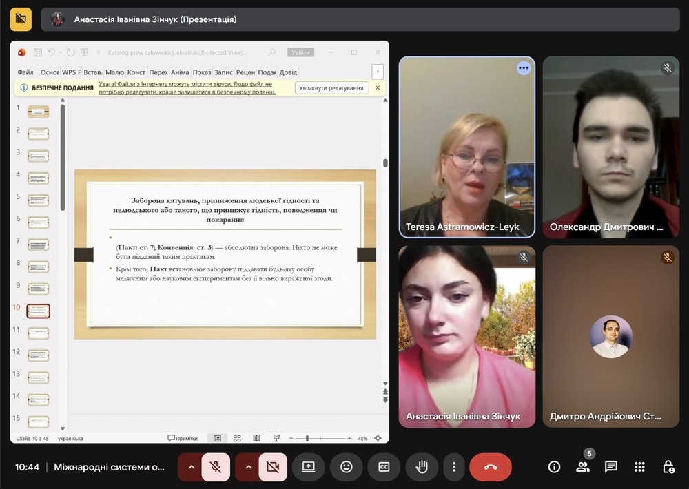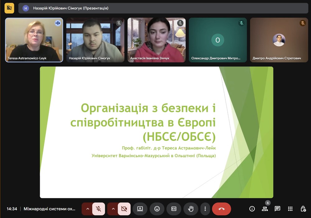 Відома польська дослідниця, професор, доктор політичних наук Тереза Астрамовіч-Лейк – професор та керівник докторських студій Інституту політичних наук Вармінсько-Мазурського університету в Ольштині від 2022 року викладає студентам магістеріуму спеціальності «Міжнародні відносини» курс «Міжнародні системи охорони прав людини».