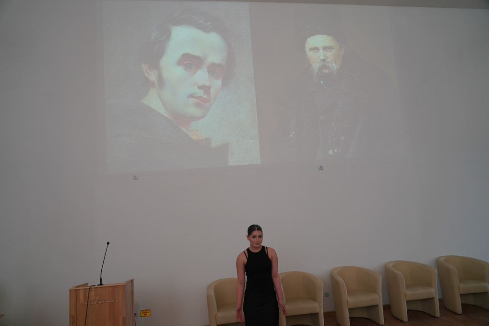Ірина Рабчук додала, що Тарас Шевченко є автором поезій, перекладених понад ста різними мовами, зокрема японською, корейською, арабською і навіть есперанто. Так усі присутні почули вірш «Думи мої, думи мої…» у виконанні студенток Навчально-наукового інституту лінгвістики німецькою, французькою та англійською.