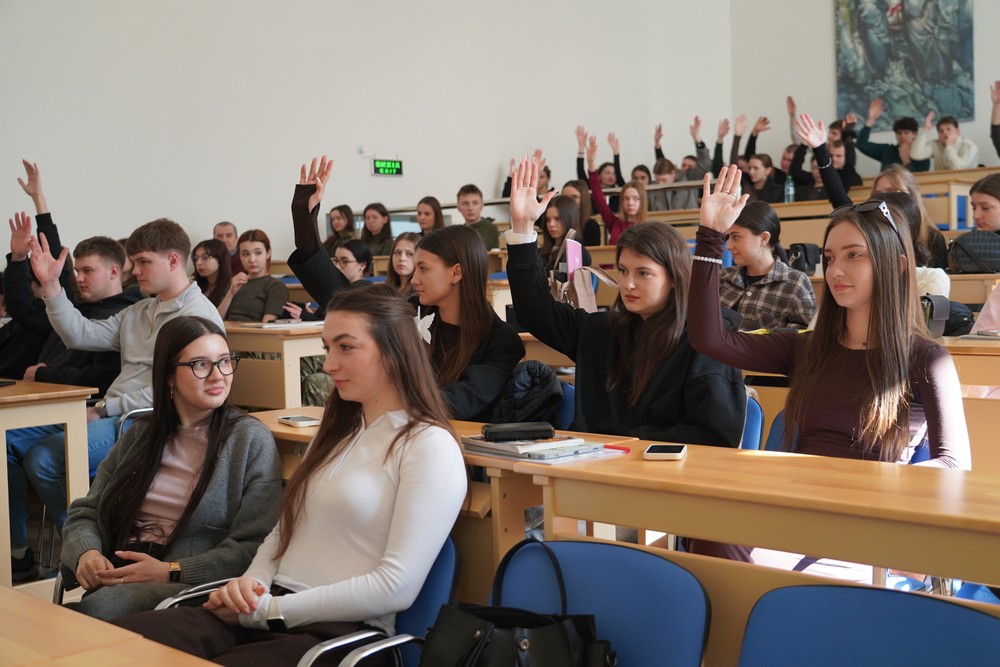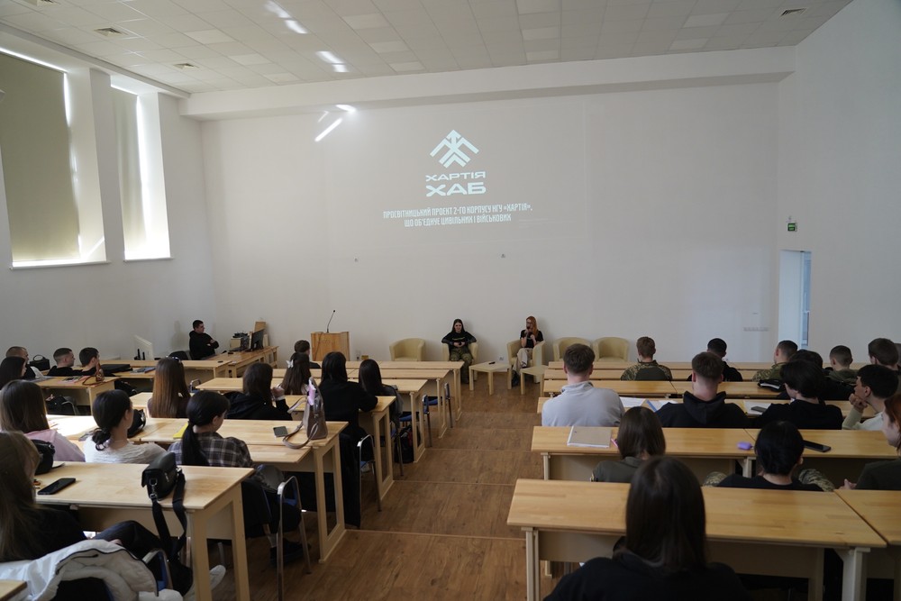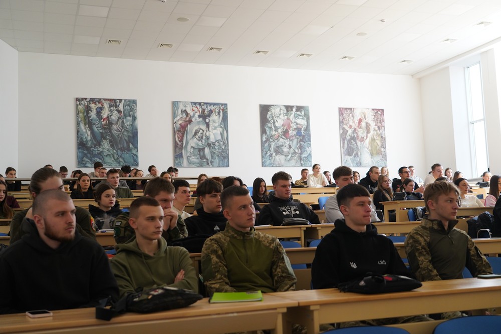 Під час заходу студенти ставили питання спікерці, а також перевірили свої знання військової справи в інтерактивному форматі, спробувавши відгадати значення конкретних слів-омонімів, які використовують у військовому жаргоні.