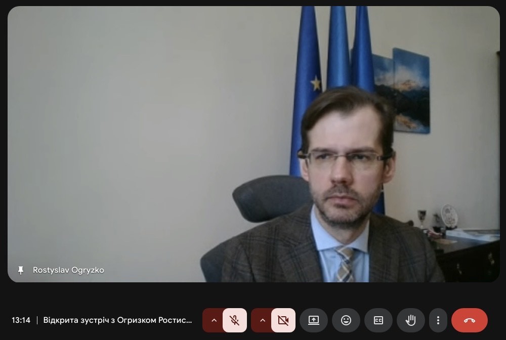«Під час зустрічі з Ростиславом Огризком ми мали можливість поспілкуватися, поставити власні запитання та перейняти цінний досвід дипломата. Особливо цікаво було ознайомитися з професійним шляхом спікера на дипломатичній службі й дізнатися про особливості його роботи».