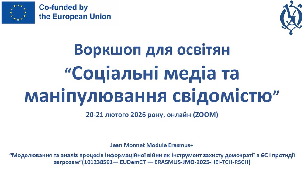 20–21 лютого 2026 року відбувся воркшоп для освітян «Соціальні медіа та маніпулювання свідомістю».
