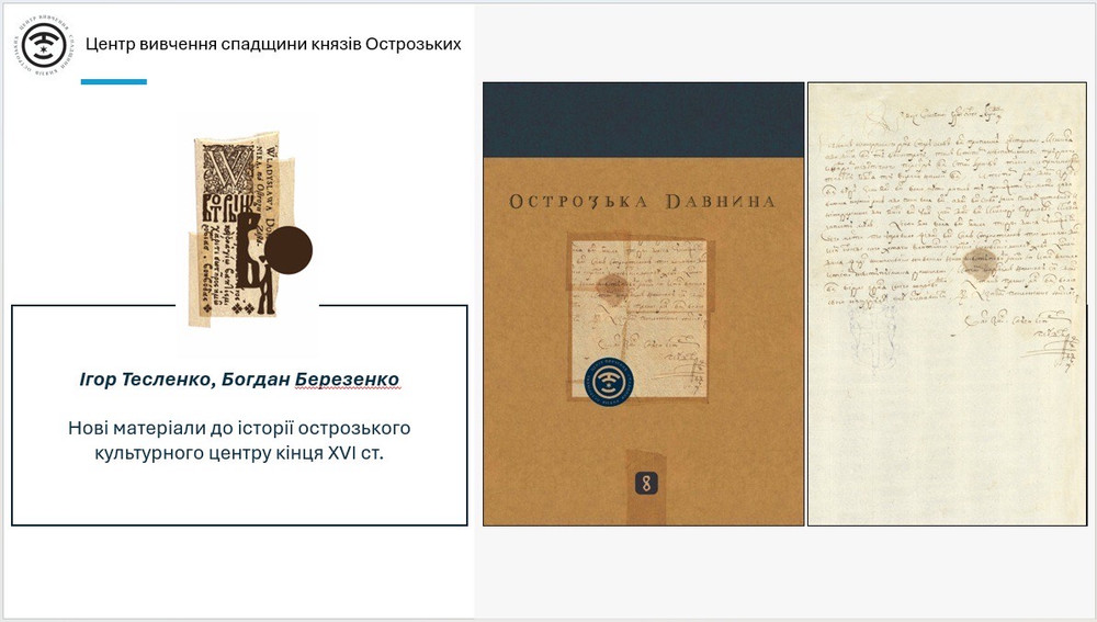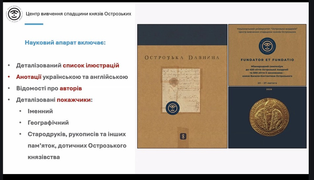 Робота симпозіуму розпочалася з презентації восьмого випуску журналу «Острозька давнина», метою якого є популяризація та оприлюднення результатів наукових досліджень з історії Острозького князівства ХІV-ХVІІІ ст. Пріоритетні завдання журналу – публікація наукових розвідок, забезпечення оперативного та зручного доступу до них для всіх зацікавлених осіб, сприяння створенню відкритого інформаційного середовища та дискусійної платформи для взаємодії досвідчених вчених і молодих науковців.