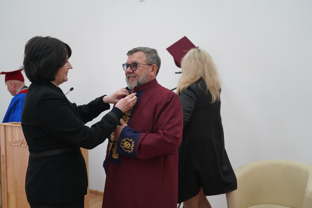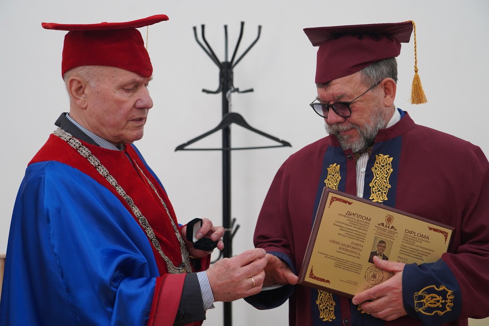 Павлові Кривоносу вручили диплом, перстень, а також одягнули мантію і шапку Почесного доктора. До вручення традиційних атрибутів були запрошені члени Вченої ради НаУОА — проректорка з навчально-виховної роботи, професорка Руслана Каламаж та директорка Навчально-наукового інституту лінгвістики, доцентка Інна Ковальчук.