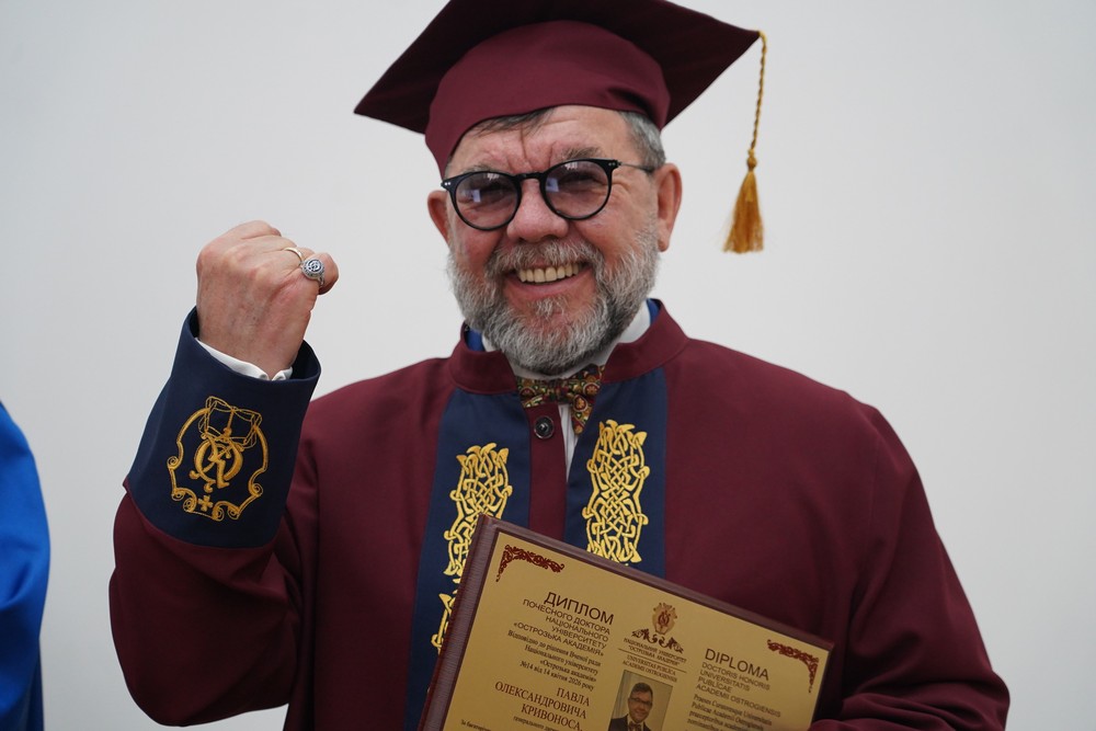 «Сьогодні ми з великою честю, щирою вдячністю та глибокою повагою вітаємо Павла Кривоноса у спільноті Почесних докторів Національного університету “Острозька академія”. Ім’я Павла Олександровича вписане в історію нашого університету, як особистості, чий професійний шлях, державницька мудрість і громадянська позиція є прикладом для нинішніх і майбутніх поколінь. Віват новообраному Почесному доктору Острозької академії Павлу Кривоносу!»
