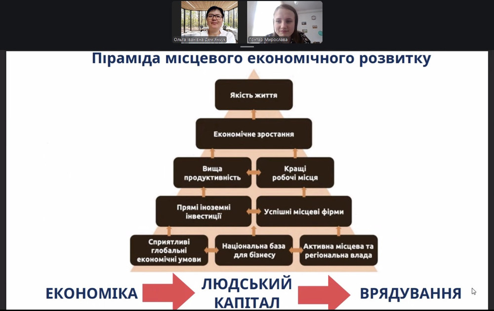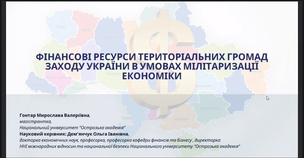Наукова керівниця студентки – докторка економічних наук, професорка кафедри фінансів та бізнесу Ольга Дем’янчук. Тема роботи – «Фінансові ресурси територіальних громад заходу України в умовах мілітаризації економіки».