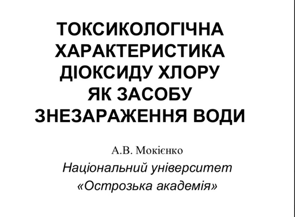 Андрій Мокієнко виступив на конференції з доповіддю на тему «Токсикологічна характеристика діоксиду хлору як засобу знезараження води» і зробив такий висновок: сучасне нормування хлоритів і хлоратів, як побічних продуктів діоксиду хлору, слід визнати надмірно агравованим та необгрунтованим, що потребує його докорінного перегляду із врахуванням реального впливу реальних концентрацій цих сполук у реальних умовах споживання питної води.