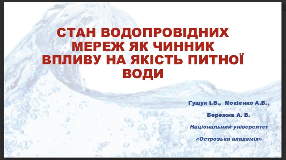 Алла Бережна презентувала доповідь авторів Гущука І.В., Мокієнка А.В., Бережної А.В. на тему «Стан водопровідних мереж як чинник впливу на якість питної води» й у висновку зазначила, що, беручи до уваги високий епідемічний ризик неблагополучного стану водорозподільних мереж систем централізованого господарсько-питного водопостачання, треба визнати необхідним внесення термінових змін у чинні регламенти дезінфекції трубопроводів питної води.