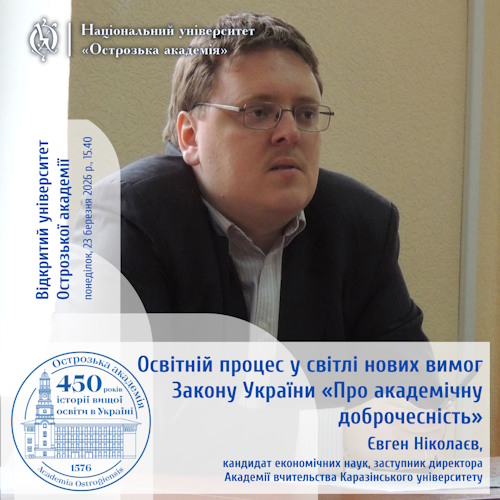 31 липня 2026 р. вводиться в дію Закон України «Про академічну доброчесність». До цього часу університети мають оновити свої внутрішні положення та політики, аби почати імплементацію норм цього закону. Необхідні зміни стосуватимуться, зокрема, й організації освітнього процесу. Запрошуємо ознайомитися із цими новаціями під час онлайн-дискусії із Євгеном Ніколаєвим, членом робочої групи із підготовки проєкту нового закону та багаторічним прибічником просування цінностей академічної доброчесності в українській освіті. На зустрічі поговоримо про те, що треба врахувати як в управлінських рішеннях університету, так і в безпосередній реалізації освітніх програм. Ключова цільова аудиторія заходу — декани, завідувачі кафедр, гаранти освітніх програм.